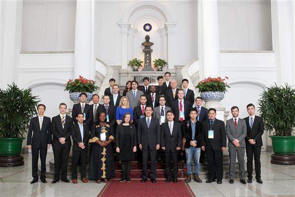 訪賓一行30餘人包括國際青年民主聯盟主席史帕蘭德(Charlotte Spurkeland)及中國國民黨國家發展研究院院長郭壽旺等人,由外交部NGO國際事務會執行長牟華瑋陪同,前來總統府晉見總統,國家安全會議副秘書長張大同也在座。