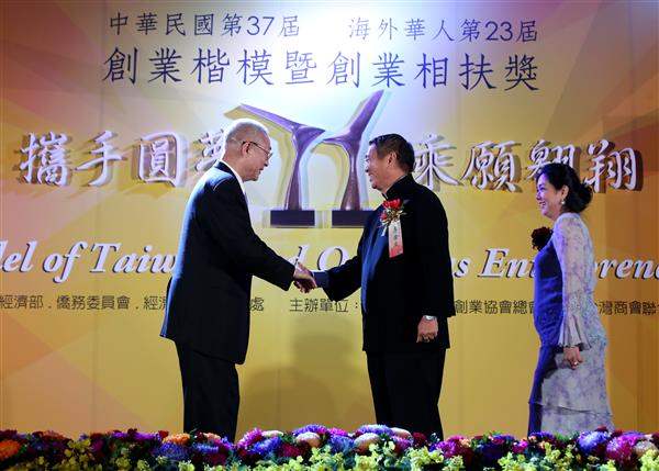 吳敦義副總統今(10)日下午出席「中華民國第37屆、海外華人第23屆創業楷模暨創業相扶獎」及「第11屆創業楷模卓越成就獎曁卓越相扶獎」頒獎典禮。