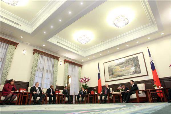 訪賓一行尚包括紐約市立大學國際事務研究所凱尼能(Tapio Kanninen)、西東大學外交暨國際關係學院史密斯(Courtney Smith)、聖約翰大學大眾傳播學系蒙特羅(Basilio Monteiro)、全球公民參與聯盟(CIVICUS)哈賓(Jeffery Huffines)、全球島嶼夥伴關係(GLISPA)布朗(Kate Brown)、人類影響機構(HII)創辦人德布多(Tara DePorte)及利益攸關者論壇執行長(Stakeholder Forum)鄔拉(Farooq Ullah),由哥倫比亞大學政治系教授黎安友(Andrew Nathan)率領,在外交部次長史亞平陪同下,前來總統府晉見總統,國家安全會議副秘書長張大同也在座。
