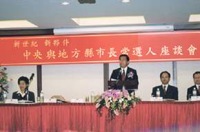 陳總統水扁先生今天下午應邀參加「中央與地方縣市長當選人座談會」,並致詞。