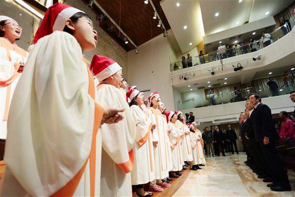 總統說,每次來到教會,內心皆充滿寧靜與祥和,因此他於2000年擔任臺北市長時,即委請教會舉辦聖誕佳節的慶祝活動,並推動舉行「和好.疼惜.平安夜」,迄今已舉辦第15年,盼讓民眾藉由參與教會活動,感受身心靈的平靜與喜樂。