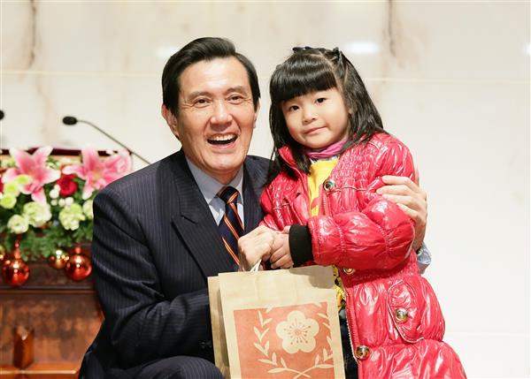 隨後,總統逐一致贈六龜基督教育幼院的幼童聖誕禮物,場面溫馨。
