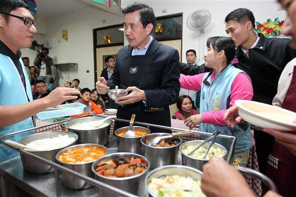總統抵達後,親切地與院生互動、閒話家常,也親自幫他們打飯菜、餵食,現場氣氛十分熱絡。適值年終歲末,總統並特別致贈加菜金、國旗圍巾及保暖用品等,盼能讓院生度過一個溫暖喜悅的的新年。