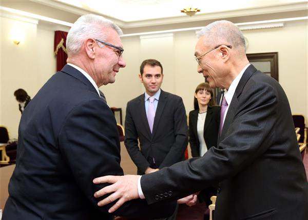 談及臺義關係發展現況,副總統指出,在經貿方面,義大利目前為我對歐貿易第5大貿易夥伴, 2013年雙邊貿易總額約38億美元;此外,臺義《避免雙重課稅協定》相關修正條文業經義大利參議院通過,刻送眾議院審議,至盼訪賓持續給予協助,讓本案儘速實現,為雙邊經貿投資注入新動能。
