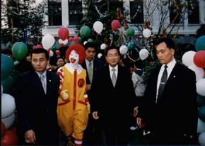 所以,在阿扁的印象中,除了上一次的世界盃棒球中華代表隊來吃中飯,引起府裡同仁的一陣騷動之外,接下來大概就是今天這個快樂的活動,全部的人都在期待著。因為早從幾天前,我們的花園裡就開始掛起亮晶晶的緞帶,優美的台灣油杉被裝飾成耶誕樹,有時候還放放音樂測試音響,當七彩的風車迎風轉動的時候,整個總統府都跟著溫暖起來,我們每一位同仁只要走出辦公室、走在走廊上,就會注意到花園的變化,我們都認為,這真是要托各位小朋友貴賓的福氣!