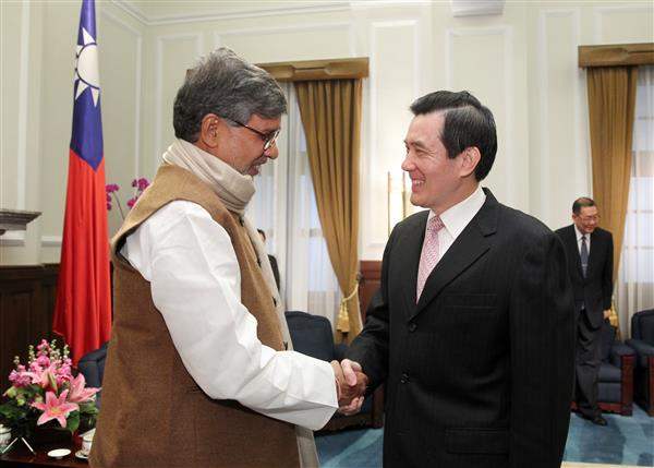 馬英九總統今(16)日上午接見2014年諾貝爾和平獎得主凱拉許‧沙提雅提(Kailash Satyarthi)伉儷,除對渠長年為維護兒童權益的努力表達敬佩之意,亦說明我政府維護兒少權益之相關作為。
