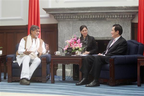 談到我民間在國際義工服務上的貢獻,總統說,過去5年來,我國「臺灣微客公益行動協會」及「伊甸社會福利基金會」每年約有100名志工前往印度,與沙提雅提先生成立的「挽救童年行動組織」(BBA)共同為維護兒童權益奉獻心力,真正做到「愛心無國界」,同時展現臺灣人關懷世界的慈善精神。