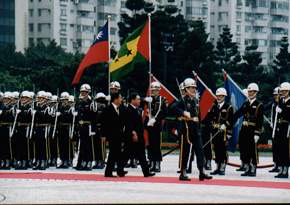 陳總統水扁先生今天代表中華民國政府與人民,以軍禮歡送聖多美普林西比民主共和國總統梅尼士及訪問團團員。