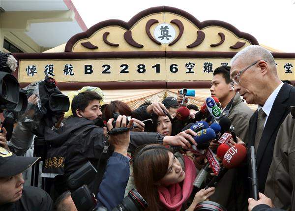吳敦義副總統今(6)日午間赴臺北市第二殯儀館復興航空GE235事故罹難者靈前致意,向家屬們致上深摯慰問,並請務必節哀順變,現場氣氛肅穆哀戚。