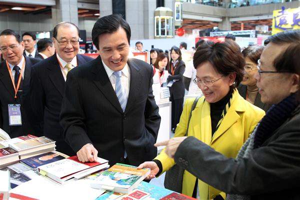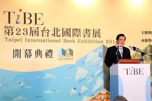 馬英九總統今(11)日上午前往臺北世貿展覽一館參加2015 TiBE「第23屆臺北國際書展」開幕典禮,並與「臺北書展基金會」董事長王桂花、文化部長洪孟啟及原住民族委員會主委林江義等共同揭幕,預祝展覽順利圓滿成功。