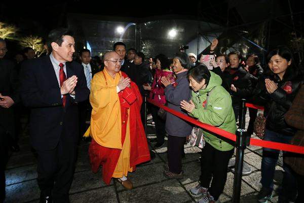 馬英九總統今(18)日晚間偕同吳敦義副總統出席「法鼓山2015除夕撞鐘祈福典禮」,在法華鐘樓與民眾一同祈願,為國家、鄉親同胞及全世界祈福。