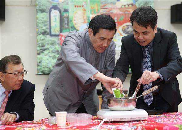 隨後,總統轉往新竹縣關西鎮農會參觀關西仙草加工廠,於聽取該農會總幹事林兆暉介紹說明後,了解當地栽培與採收仙草之流程,並體驗DIY製作仙草凍。