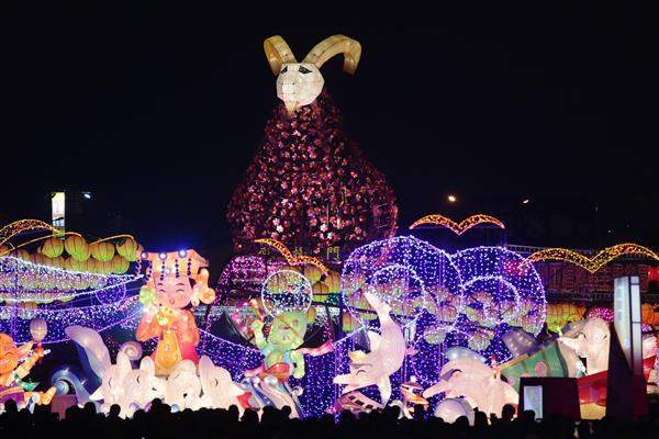 隨後,總統在行政院長毛治國及臺中市長林佳龍陪同下,共同按鈕點亮園區高達23.4公尺的主燈「吉羊納百福」,並施掛祈福卡,祝福國人「喜氣羊羊、民富國強,揚眉吐氣、神采飛揚」。