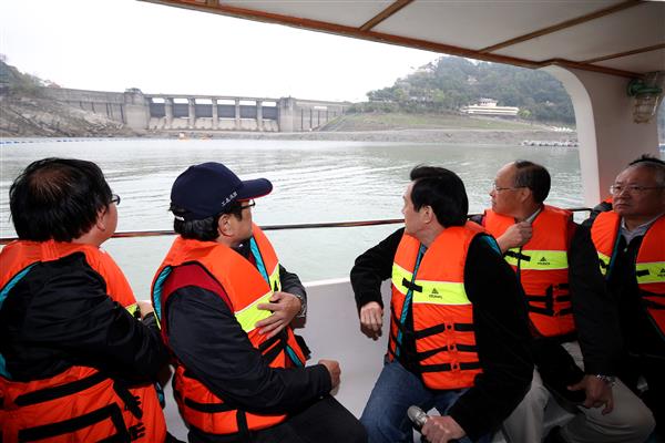 由於旱象未見舒緩,馬英九總統今(7)日下午由經濟部長鄧振中等陪同視察石門水庫水情,實地瞭解北部地區供水情勢及抗旱措施。