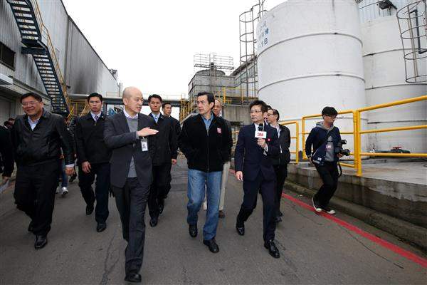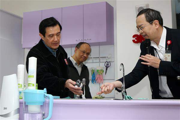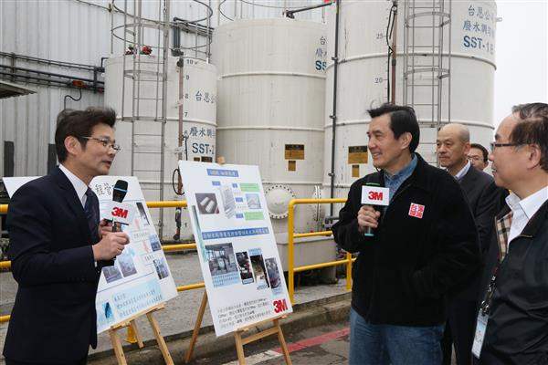 馬英九總統今(7)日下午前往桃園市訪視「臺灣明尼蘇達礦業股份有限公司(3M)臺灣研發中心」,對該公司致力研發節水與節能設施,表達肯定之意。