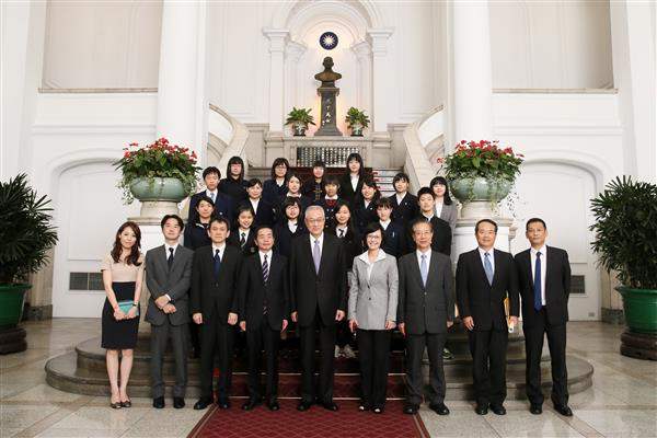 得獎學生一行由「富士產經商情報」社長縣良二及總編輯関根秀行陪同,前來總統府拜會副總統,外交部次長史亞平及亞東關係協會秘書長羅坤燦均在座。