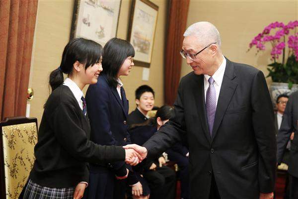 吳敦義副總統今(18)日下午接見「第十二屆臺日青少年文化交流獎學金計畫」得獎學生,代表中華民國政府與人民歡迎訪賓來華,並期盼得獎者未來能成為傳播臺日友誼的種子,為促進兩國各項交流做出貢獻。