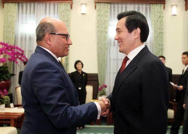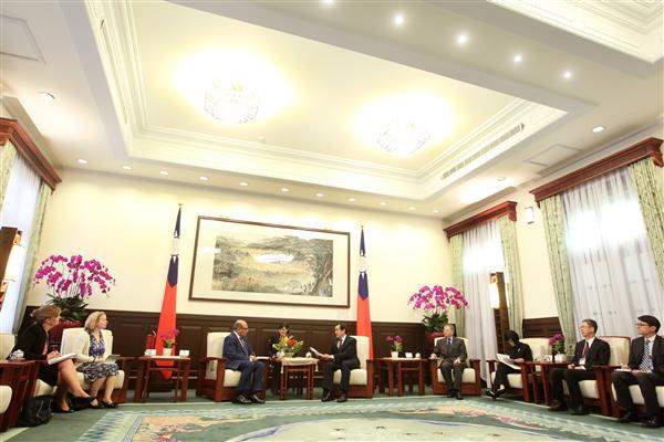 訪賓一行由外交部次長史亞平陪同,前來總統府晉見總統,國家安全會議諮詢委員楊念祖也在座。