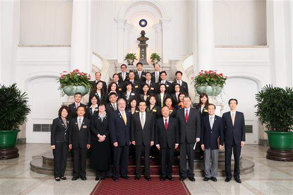 馬英九總統今(20)日上午接見「國際同濟會」世界總會長巴頓(John Button)伉儷暨臺灣總會理監事,肯定該會長期從事兒童及社區服務所付出的努力,並說明我政府推動兒童福利之具體作為。