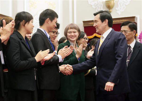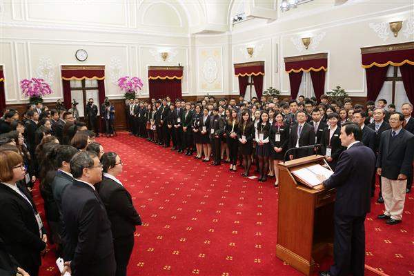 馬英九總統今(26)日下午接見「104年青年獎章得獎人、社會及大專優秀青年代表」,除向獲獎人道賀,並期許充分發揮潛力及創意,共同為國家社會盡一分心力。