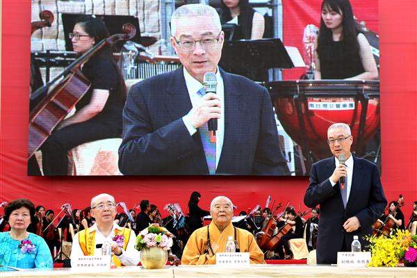 吳敦義副總統今(6)日下午前往高雄市佛光山佛陀紀念館出席「2015年萬人歌頌偉大的佛陀音樂會」。