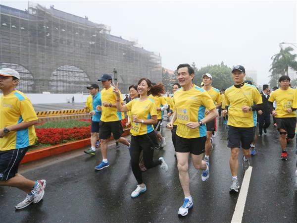 隨後,總統與體育署副署長王水文、福斯國際電視網臺灣暨中國區董事總經理蔡秋安、中華民國紅十字會總會長王清峰及臺北市美國商會執行長吳王小珍等人一起鳴槍,與參加活動的民眾一同從中正紀念堂起跑。