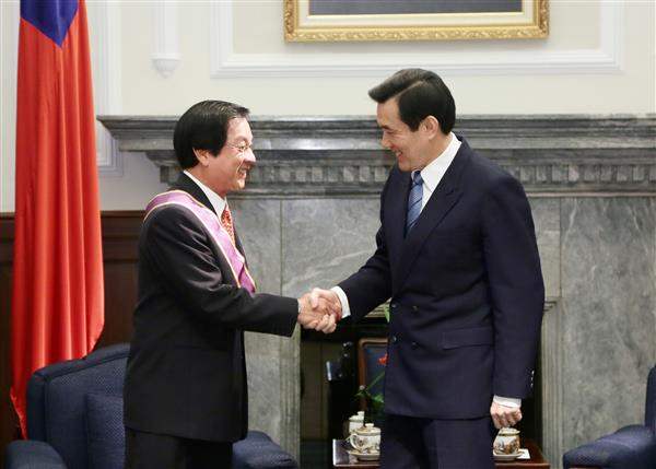 馬英九總統今(15)日下午在總統府頒授新加坡駐臺北商務辦事處代表于文豪(Calvin Eu Mun Hoo)「大綬景星勳章」,以表彰渠於增進臺新關係的努力,以及促成雙方簽署《臺星經濟夥伴協定》(ASTEP)等傑出貢獻。