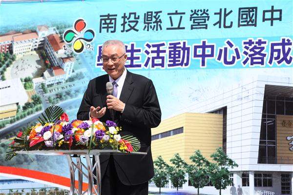 副總統在營北國中致詞時表示,民國87年臺灣省政府功能業務與組織調整後,中興新村逐漸失去省政中樞運作之功能,為進一步帶動南投地方發展,他在行政院長任內致力打造中興新村為「高等研究園區」,而今日前來參加營北國中學生活動中心的落成典禮,欣見這項中興新村重要的文教建設已竣工並開始使用,令他深感欣慰。