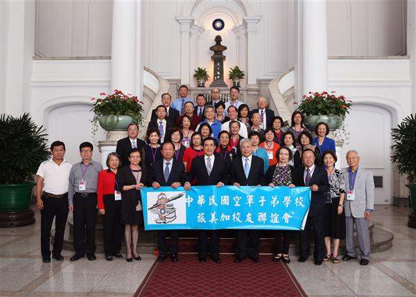 馬英九總統今(21)日下午接見中華民國空軍子弟學校「旅美加校友聯誼會」回國訪問團,對訪賓遠道返國參訪,表達誠摯歡迎之意。