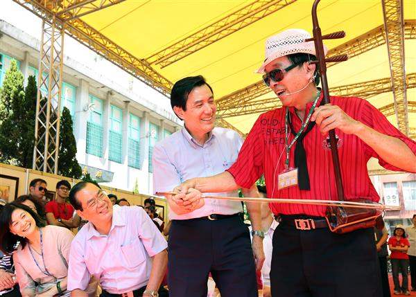 總統抵達後,首先參觀樂齡班學員書法、棉紙撕畫及攝影作品成果展示,並聆賞樂齡爵士二胡表演,現場氣氛非常熱鬧歡欣。隨後,總統也聽取教育部「推動樂齡學習的現況與展望」簡報以及兩位樂齡學員張雅雄、陳粉菊的學習心得分享。