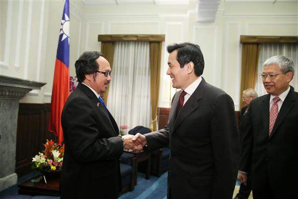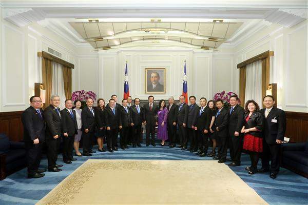 訪賓一行由「馬臺經貿協會」會長陳榮立率領、僑委會委員長陳士魁陪同,前來總統府晉見總統,總統府副秘書長熊光華也在座。