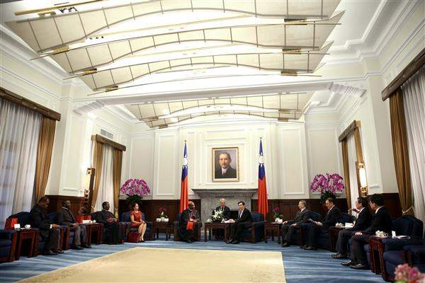 訪賓一行由海地駐華公使代辦庫珀(Rachel Coupaud)及外交部次長高振群陪同,前來總統府晉見總統,國家安全會議諮詢委員楊念祖也在座。