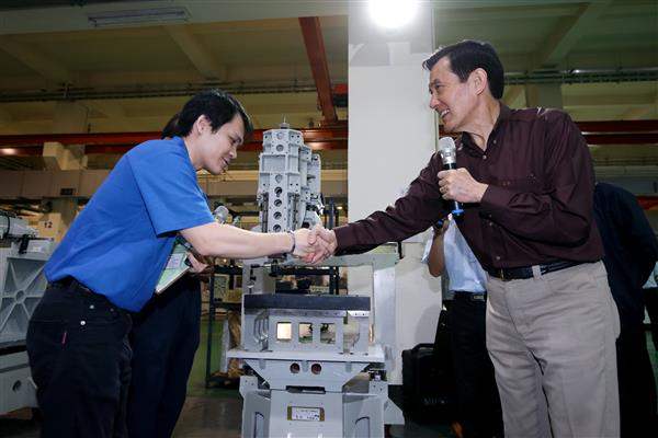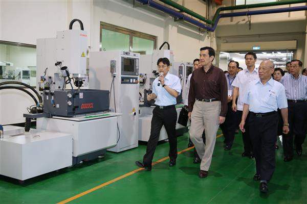 馬英九總統今(23)日上午前往臺中市的「慶鴻機電工業公司」進行「推動中間企業躍升計畫」成果訪視,除肯定慶鴻機電工業公司在技術研發上的用心與傑出表現外,也期待該公司未來能持續創新,讓我國工具機產業更上層樓。