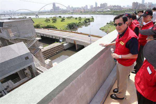 馬英九總統今(30)日上午前往新北市新莊區「塔寮坑2號抽水站」進行防汛視察,除重申「離災、防災、救災」的重要性外,並呼籲國人應以防患未然的態度共同珍惜水資源。