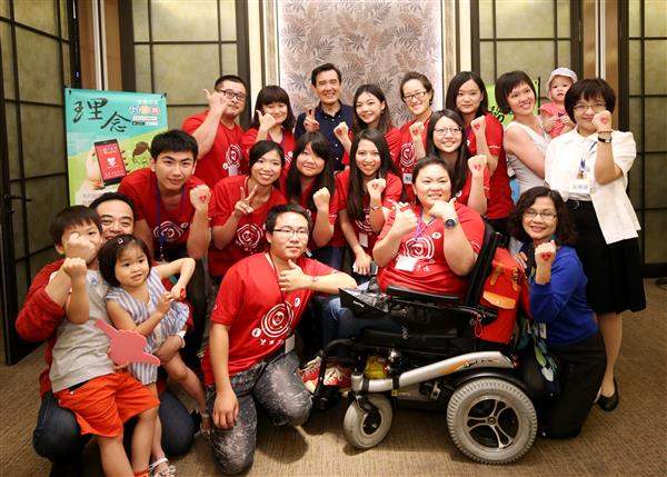 最後,總統與「众社會企業」的工作人員,以及現場多位「愛心特派員」,共同喊出「我為人人、人人為我、友善臺灣、萬眾一心」的口號,期盼臺灣社會能充滿更多善良友好的氣氛。
