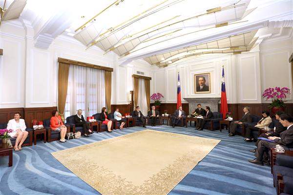 訪團成員尚包括國會議員柯彭(Jens Koeppen)、史桃荷(Carola Stauche)、柯玫爾(Marina Kermer)、魏可萊(Andrea Wicklein)及赫樂(Uda Heller)等,由德國在臺協會處長歐博哲(Martin Eberts)及外交部次長史亞平陪同,前來總統府晉見總統,國家安全會議諮詢委員楊念祖也在座。
