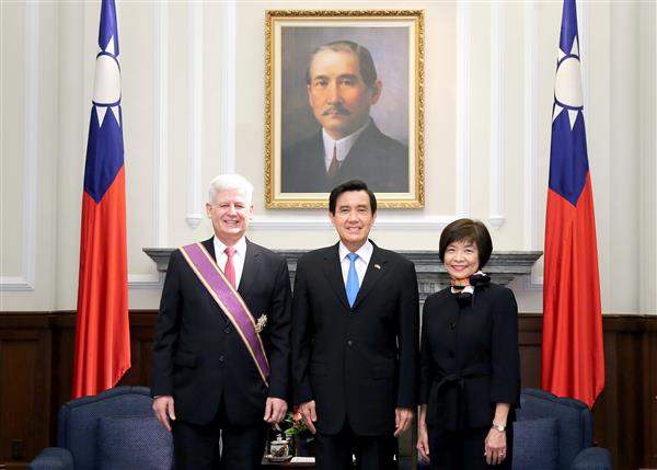 馬英九總統今(3)日下午頒授美國在臺協會臺北辦事處處長馬啟思(Christopher J. Marut)「大綬景星勳章」,以表彰渠增進臺美關係的努力與傑出貢獻。