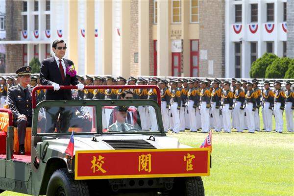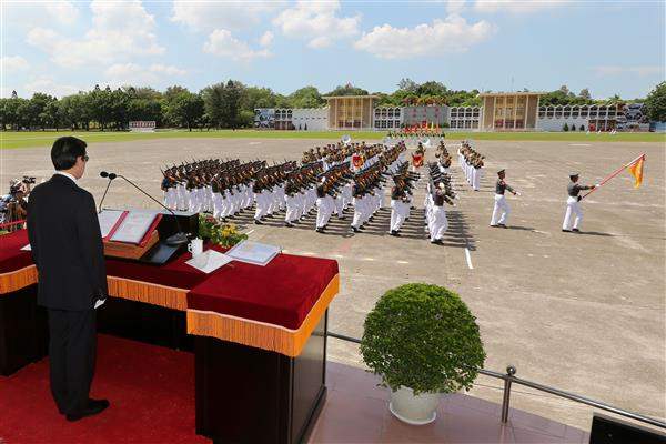 總統抵達後,首先校閱陸、海、空軍軍官學校及國防大學學生部隊,對地面部隊所展現未來國軍幹部的精實與自信,表達肯定之意。