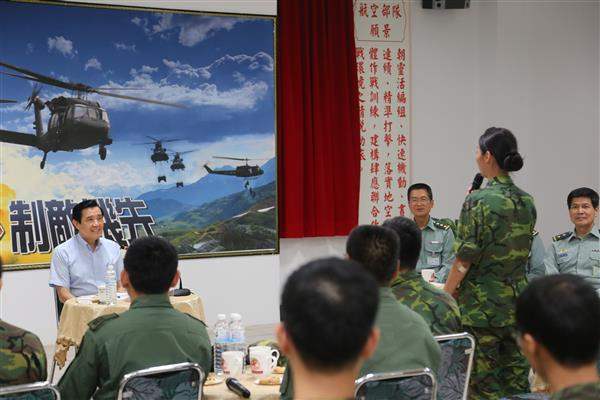 端午節將屆,馬英九總統今(18)日視導桃園地區陸軍航空601旅及陸軍司令部,除向國軍官兵賀節及慰勉渠等辛勞,並期勉國軍眾志成城,協助政府共同推動募兵制。