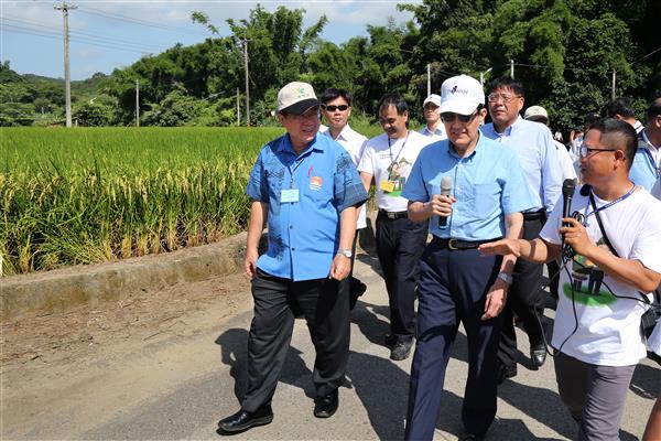 總統抵達後首先由青年農民張智傑導覽參觀有機水稻田、排水設施計時器與農用機具,瞭解有機稻米的種植、生長情形,並細細品嚐有機米與有機黃豆製成的豆漿、豆腐,盛讚「入口即香」;隨後聽取農委會簡報,亦與青年農民進行意見交流。針對與會青年農民所提農地農用、政府如何協助青年從事農業工作、解決農村農業勞動力不足的問題及青年農民專案輔導措施等,農委會代表均逐一回應。