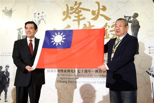 馬英九總統今(3)日下午前往臺北國父紀念館出席「烽火浮生錄:抗戰勝利七十週年的另一頁歷史照片展」暨「抗戰勝利暨臺灣光復七十週年-蔣渭水先生紀念展」開幕典禮,除說明中華民國對日抗戰之艱辛與貢獻,並盼我國永遠扮演「和平締造者」與「人道援助提供者」的角色,促進世界和平與合作。