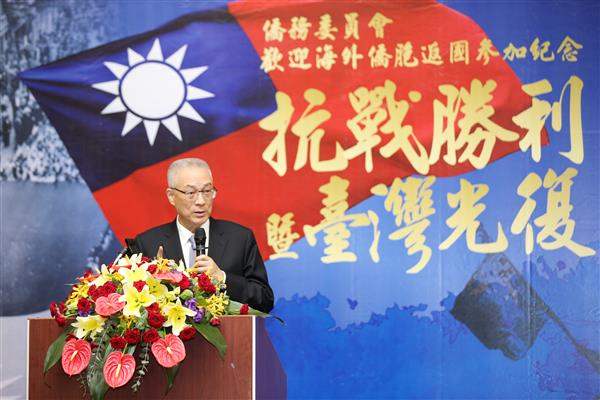 吳敦義副總統今(4)日中午出席僑委會舉辦的「海外僑胞返國參加紀念抗戰勝利暨臺灣光復七十週年活動接待餐會」,對與會海外僑胞不遠千里回國參與紀念抗戰勝利相關活動,表達誠摯歡迎與感謝之意。