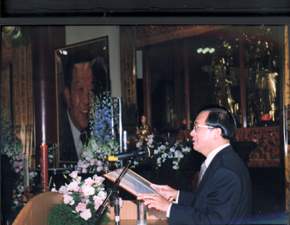 我們在這裡思念信介仙、二千三百萬人民永遠的歐里桑,也衷心的希望台灣坎坷的道路能夠變平坦,曲折的道路能夠變寬直。希望信介先生在天之靈保佑台灣這塊土地,保佑二千三百萬人民。信介先生的精神不死,永遠與大家同在。