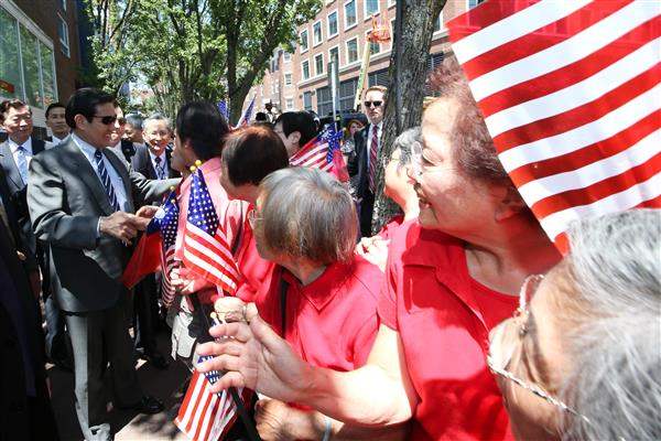 馬總統表示,僑胞在過去百餘年間對中華民國貢獻良多,黃花岡72烈士中就有三分之一是華僑。而在波士頓地區也有許多僑胞為國犧牲奉獻,例如在對日抗戰期間加入飛虎隊的陳啟邦、李兆進與黃廷深,以及參與諾曼第登陸行動的黃君裕;不論在亞洲或歐洲戰場,皆可見到波士頓人的身影,令人感佩。