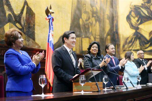 馬總統發表演說前首先以西語感謝多國國會對我國的長期支持,並表示,此行他應梅迪納總統之邀,第三度率團訪問多明尼加,對此也深感榮幸。馬總統說,他與多明尼加頗有淵源, 2008年就任總統後,第一個造訪的友邦即為多明尼加;此外,該國首都聖多明哥市係臺北市於1970年2月16日在拉丁美洲所締結的第一個姊妹市,而他於1998至2006年擔任臺北市長期間,即深刻了解雙方特殊的關係,對多國存有濃厚而親近的感情。