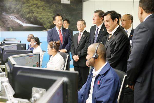 結束國會行程後,馬總統前往911勤務中心,參觀電話報案話務中心及監視攝影勤務指揮中心,實際瞭解該中心因應急難救助案件之具體作為。為提升當地醫療救護能量,我國過去兩年曾捐贈80輛救護車以及1,000輛國產警用機車與救護機車供該中心使用,對此,總統也表示肯定之意。