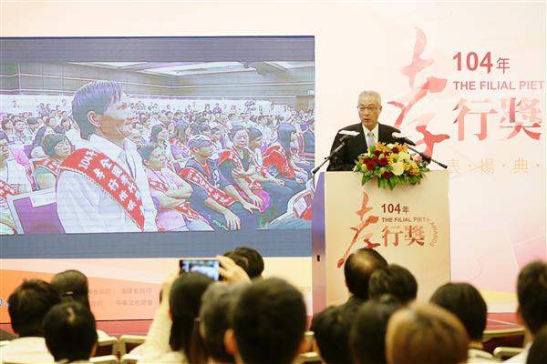 吳敦義副總統今(17)日上午出席「104年全國孝行獎表揚典禮」,盼透過表揚活動發揚「人人重孝道、社會更祥和」的精神,讓溫暖傳遞至每個角落。