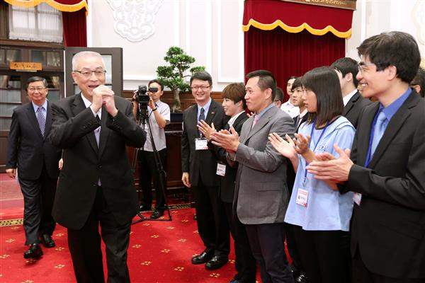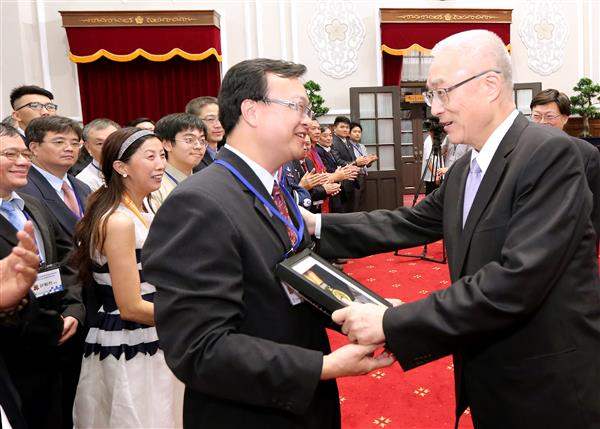 吳敦義副總統今(17)日下午接見103年著名國際發明展金牌得獎人一行,除肯定渠等為國爭光,並強調政府推動各項鼓勵創新的政策,期讓國人從「創新」到「創業」,進一步達成為國「創富」的目標。