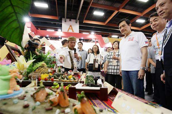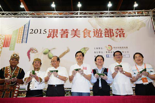 「2015年臺灣美食展-臺灣美好食代」於本(7)月17至20日於臺北世貿一館A、D區擴大舉辦,馬英九總統今(19)日下午前往參觀「食來運轉遊臺灣」、「翫味客家」、「原民薈館」、「玉食臺灣」、「鐵路便當」、「臺灣農業館」及「芡香臺灣」等主題館;總統也與現場賓客一同「搗麻糬」、手做魯凱族傳統食物-「吉納富」及「幸福列車」飯糰,現場氣氛熱絡歡愉。