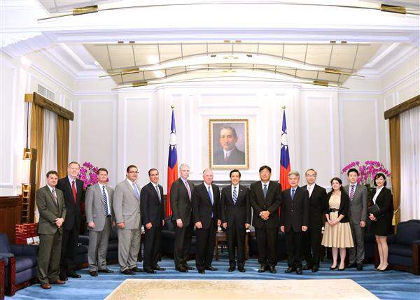 在臺美經貿合作方面,總統表示,我國在去年已經超越印度及沙烏地阿拉伯,成為美國第10大貿易夥伴,而美國也成為我國第2大貿易夥伴,僅次於中國大陸。我政府刻正積極向美方爭取加入《跨太平洋夥伴協定》(TPP)的協商,因為TPP成員國佔我對外貿易總額的35%,極具重要性。他在上周過境美國時,曾與26位聯邦參、眾議員見面或通電話,並對我方參與TPP表達強烈意願,渠等均給予正面回應;他也與美國行政部門官員通電話,討論TPP與南海等議題,顯示雙方溝通管道順暢,感謝包括奎爾前副總統在內的多位美國友人長期對我國的支持與協助。